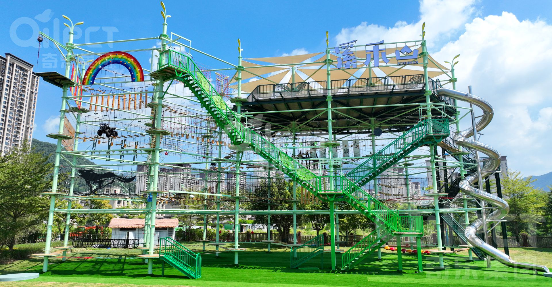 廣州奇樂游樂設(shè)備有限公司,總部坐落于粵港澳大灣區(qū)廣州黃埔區(qū),是國內(nèi)無動力游樂設(shè)備領(lǐng)域知名的綜合服務(wù)商,業(yè)務(wù)涵蓋游樂設(shè)備咨詢、策劃設(shè)計、定制生產(chǎn)、售后及運(yùn)營指導(dǎo)為一體的全案服務(wù)。 公司多年來秉承 " 奇新必樂 樂無止境”的發(fā)展理念深耕國內(nèi)外無動力親子家庭市場,在沉浸式樂園、探險樂園、戶外綜合拓展樂園以及叢林穿越等無動力設(shè)備領(lǐng)域有著豐富的客戶案例和實(shí)戰(zhàn)經(jīng)驗(yàn)。公司擁有國家高新技術(shù)企業(yè)、國家貫標(biāo)企業(yè)、進(jìn)出口權(quán)著作權(quán)以及國家專利等多項認(rèn)證資格。 奇樂集團(tuán)成立至今,始終秉承“客戶至上,誠信經(jīng)營”的宗旨,并以創(chuàng)新的技術(shù)力量傲立于市場前沿,在同行中脫穎而出。 目前我們有著20000㎡的生產(chǎn)車間,先進(jìn)齊全的機(jī)械加工設(shè)備,完善的游樂設(shè)備檢測能力。主要產(chǎn)品包含;水晶塔、鉆石塔、兒童樂園、淘氣堡、蹦床、沙池、網(wǎng)紅秋千、不銹鋼滑梯、公園滑梯、兒童攀爬設(shè)備、水上游樂設(shè)備、兒童拓展設(shè)備、兒童公園游樂設(shè)備整體方案設(shè)計、生產(chǎn)制造等一系列兒童游樂設(shè)備產(chǎn)品。 近年來,憑借本公司誠實(shí)守信和良好經(jīng)營作風(fēng)及可靠的產(chǎn)品質(zhì)量,擁有一支愛崗敬業(yè)的游樂設(shè)備技術(shù)團(tuán)隊,深受國內(nèi)外各界用戶的的廣泛認(rèn)同與歡迎,形成了良好的市場知名度與美譽(yù)度,銷售網(wǎng)絡(luò)遍及國內(nèi)各大中城市。